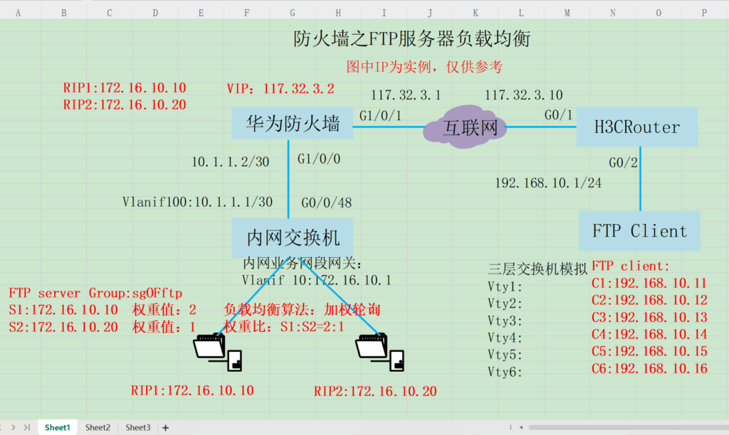 本举例以FTP服务器为例,介绍如何配置四层负载均衡。其他IP服务器,如DNS、SMTP、RADIUS等均可参考本举例的配置。